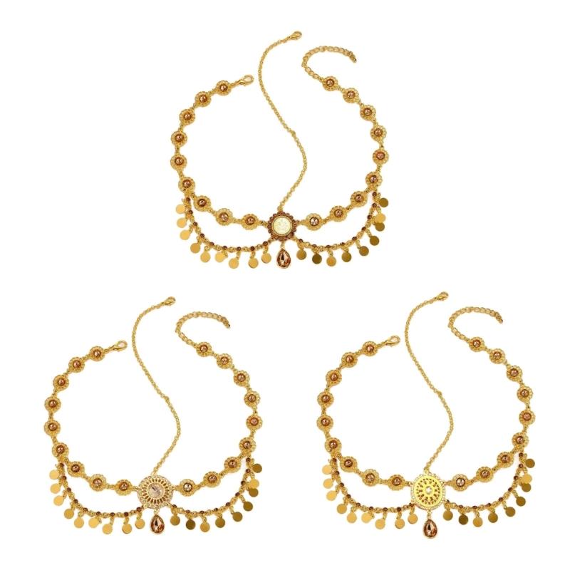Indian Bridal Head Chain Gold Color Coin Tassels Rhinestones Headdress for Women Wedding Accessories Casual Wear