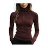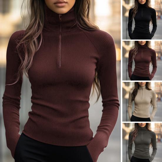 Women's long-sleeved top is crafted from high-quality polyester, offering a soft, stretchy, and skin-friendly feel for all-day comfort. Featuring an elegant solid-color knitted design with a stylish high collar, it combines simplicity with sophistication.