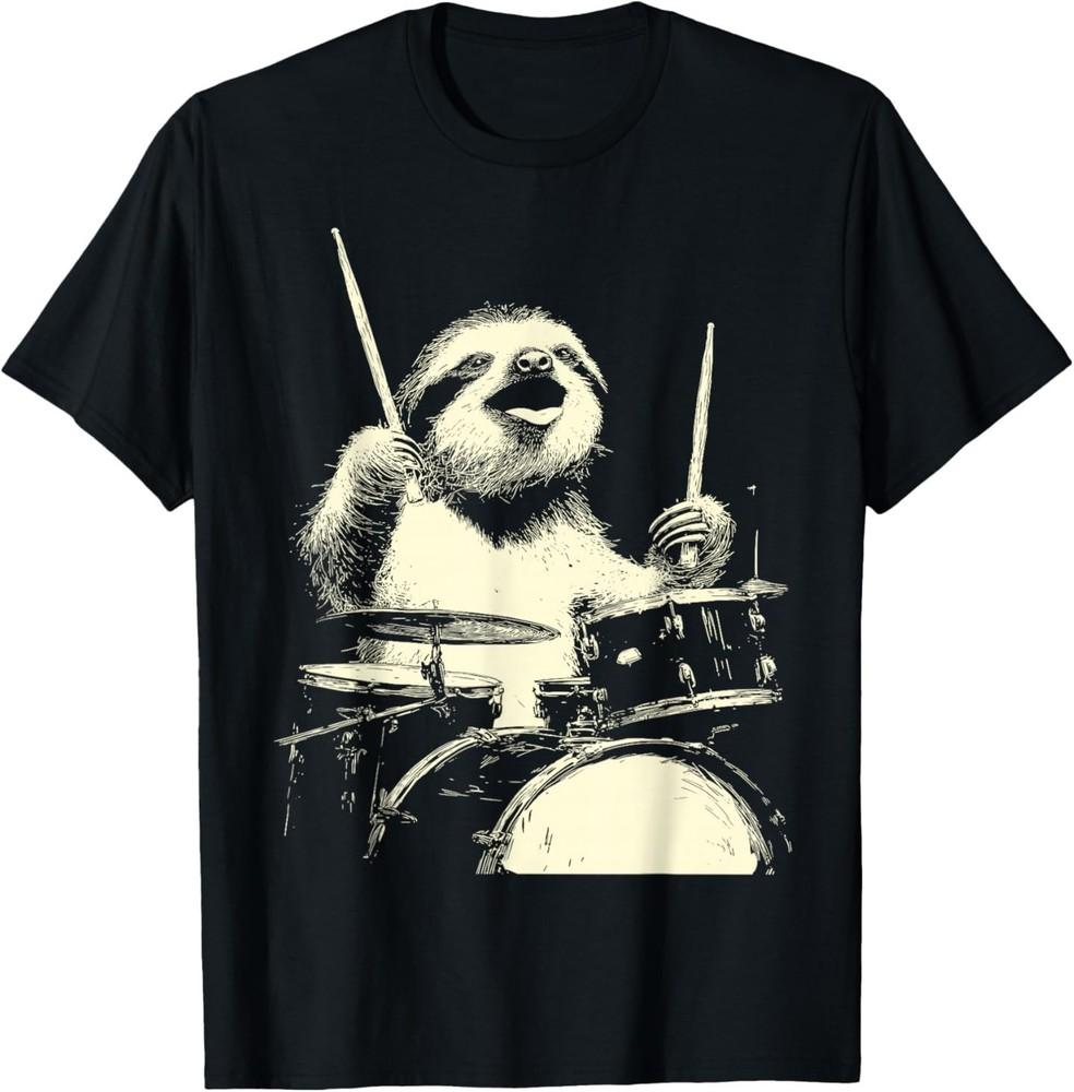 Cute Sloth Playing Drums Funny Music Animal Drummer Graphic T-Shirt