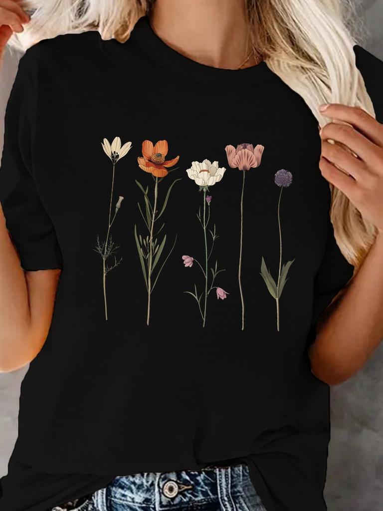 Four Floral Prints T-shirt Women's Harajuku Short Sleeve Casual T-shirt Clothing Street Tops Tees Aesthetic Clothes