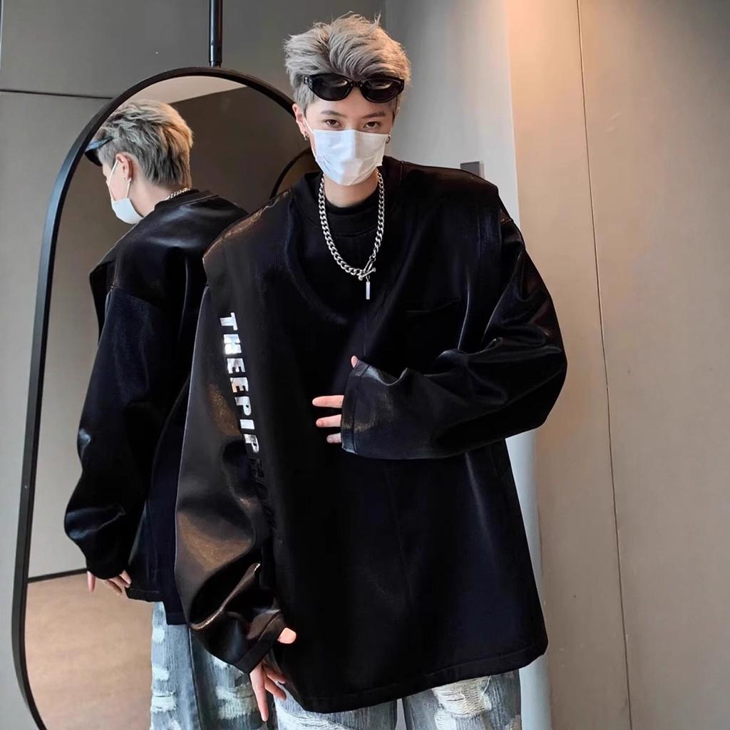 Fake Two Sweater Men's Niche American Letter Round Neck Autumn Coat Loose Inside