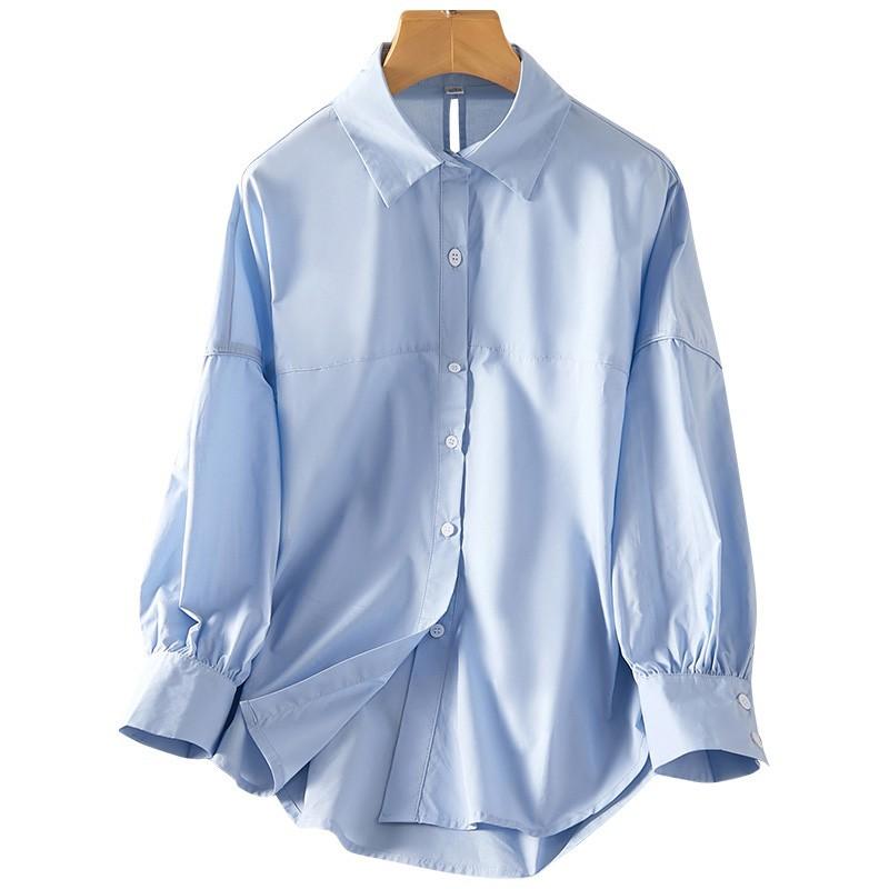 Blue Lantern Sleeve Design Shirt Women's Long-sleeved Spring Loose Casual Top Fashionable Chic Shirt