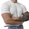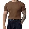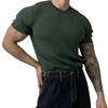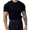 Men Summer Sport T-shirt Knitted Thread Elastic O Neck Slim Fit Solid Color Short Sleeves Pullover Workout Gym Training Top