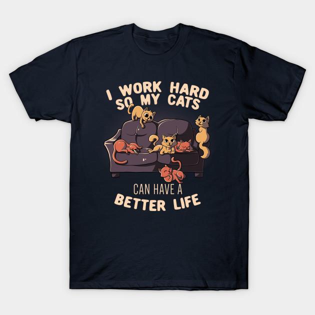 Men Black Print T-shirt I Work Hard So My Cats Can Have A Better Life Funny Cute Gift No-Cut Transfer Paper Print Cotton Tshirt