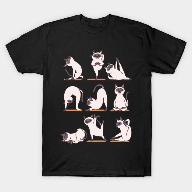 Men Black Print T-shirt Siamese Cat Yoga No-Cut Transfer Paper Print Cotton Tshirt