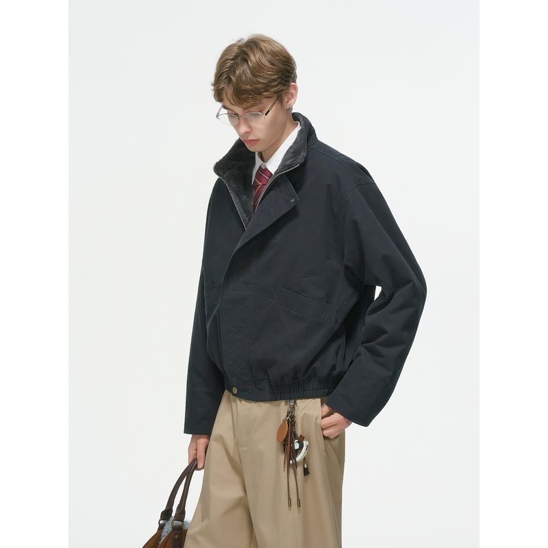 Dream Made American Barn Style Boxy Short Wide Workwear Cotton Jacket for Men, Winter Fleece-Lined and Thickened Cotton Coat