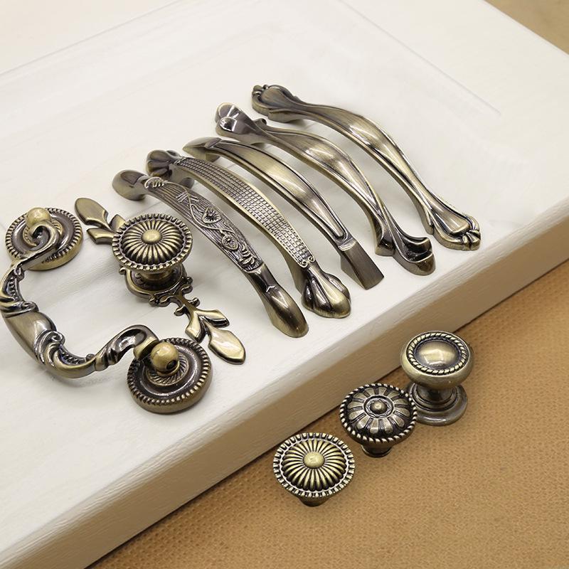European Style Antique Bronze Pull Handle for Kitchen Cabinets, Wardrobes, and Drawers - Classic Retro Zinc Alloy Design.