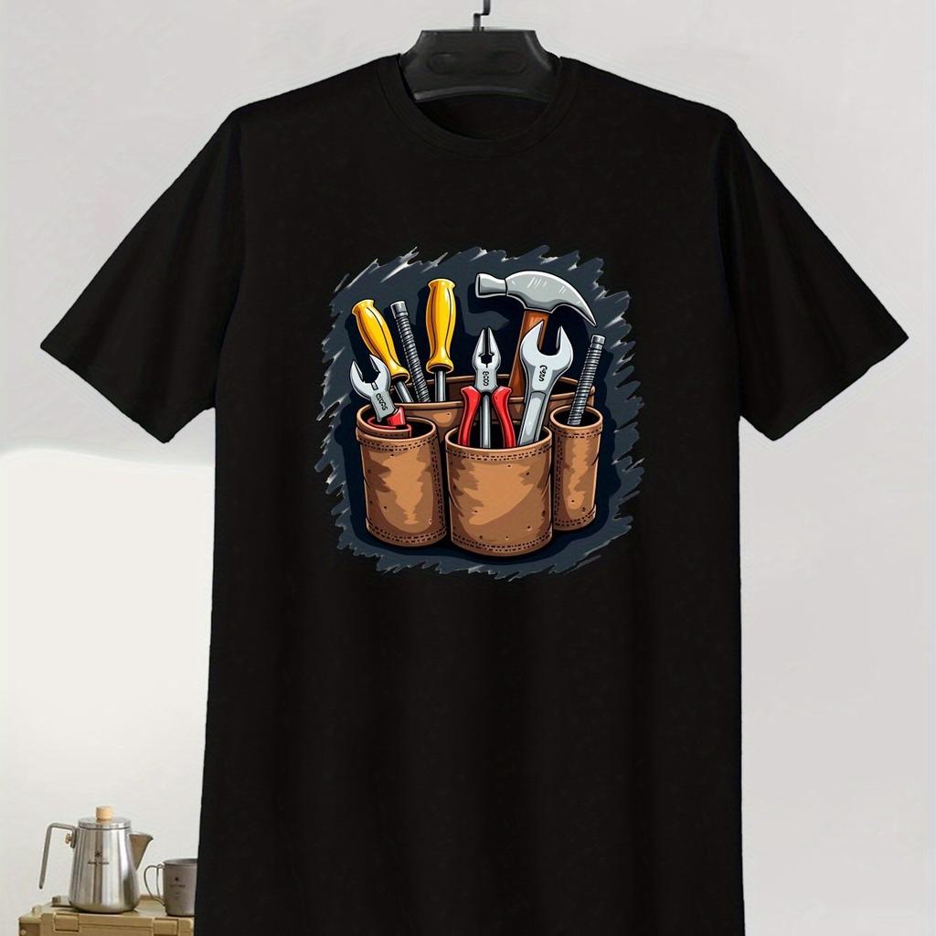 Men's Casual Short Sleeve T-Shirt with Tool Belt Tools Graphic Print Summer Tee Vibrant Blue Regular Fit Machine Washable