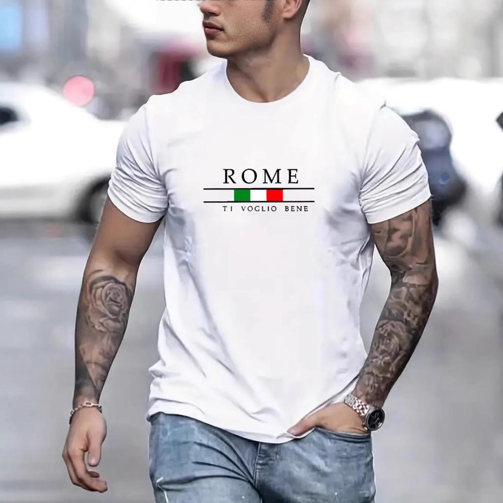 Men's Cotton T-shirt Letter Printing Pattern Short-sleeved Base Coat Round Neck Sweatshirt