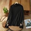 Autumn Winter Retro Velvet Bohemian Embroidery Base Layer Long Sleeve Top for Women