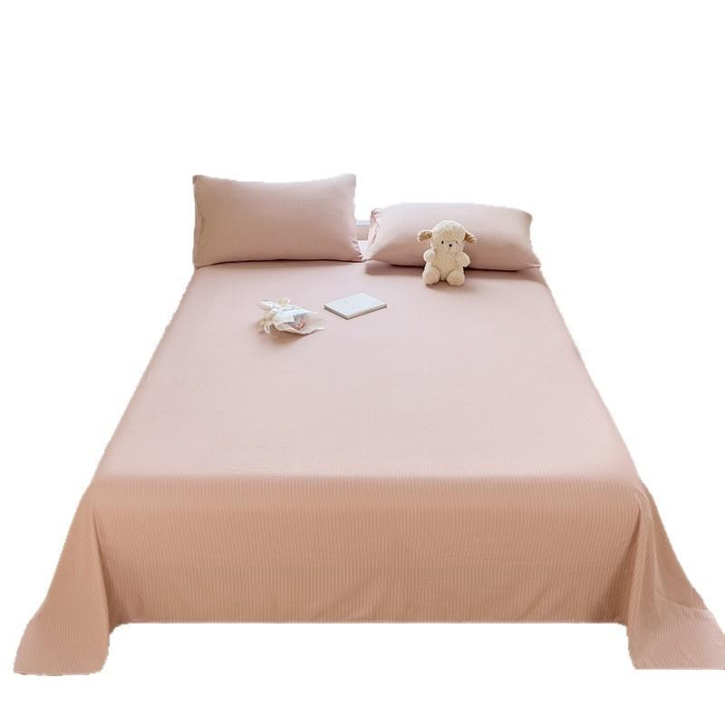 This fitted sheet is designed with a three-dimensional cut that fits the bed shape, and is reinforced with elastic bands on the edges. It can tightly wrap the mattress and prevent it from shifting and slipping. It is suitable for most standard-size mattresses.