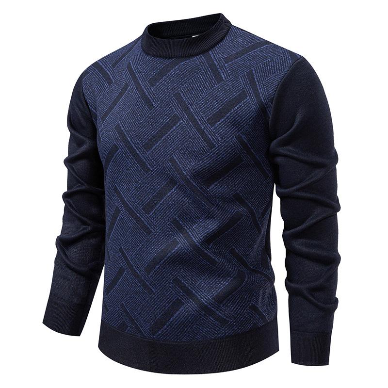 Autumn and Winter New Men's Fashion Trendy Striped Sweater Plus Velvet Thickened Casual Round Neck Warm