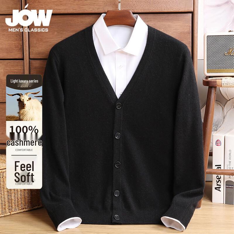 JOW Men's 100% Cashmere V-Neck Cardigan