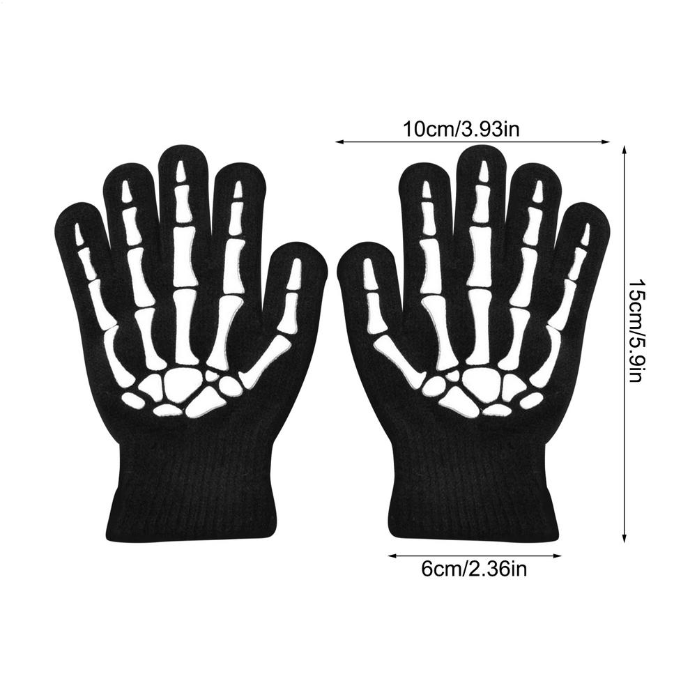 Skeleton Cycling Gloves Halloween Full Finger Skull Mittens Glow In The Dark Halloween Costume Accessory Gloves for Ages 5-12