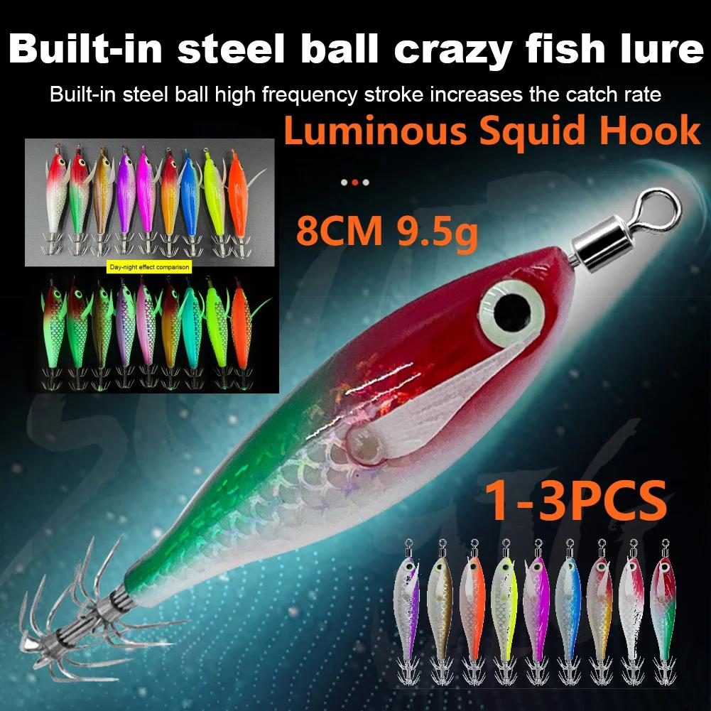 1-3PC Luminous Squid Hook Fishing Lure Double Hook Glow In The Dark Wood Shrimp with 3D Eyes Fake Octopus Bait for Night Fishing
