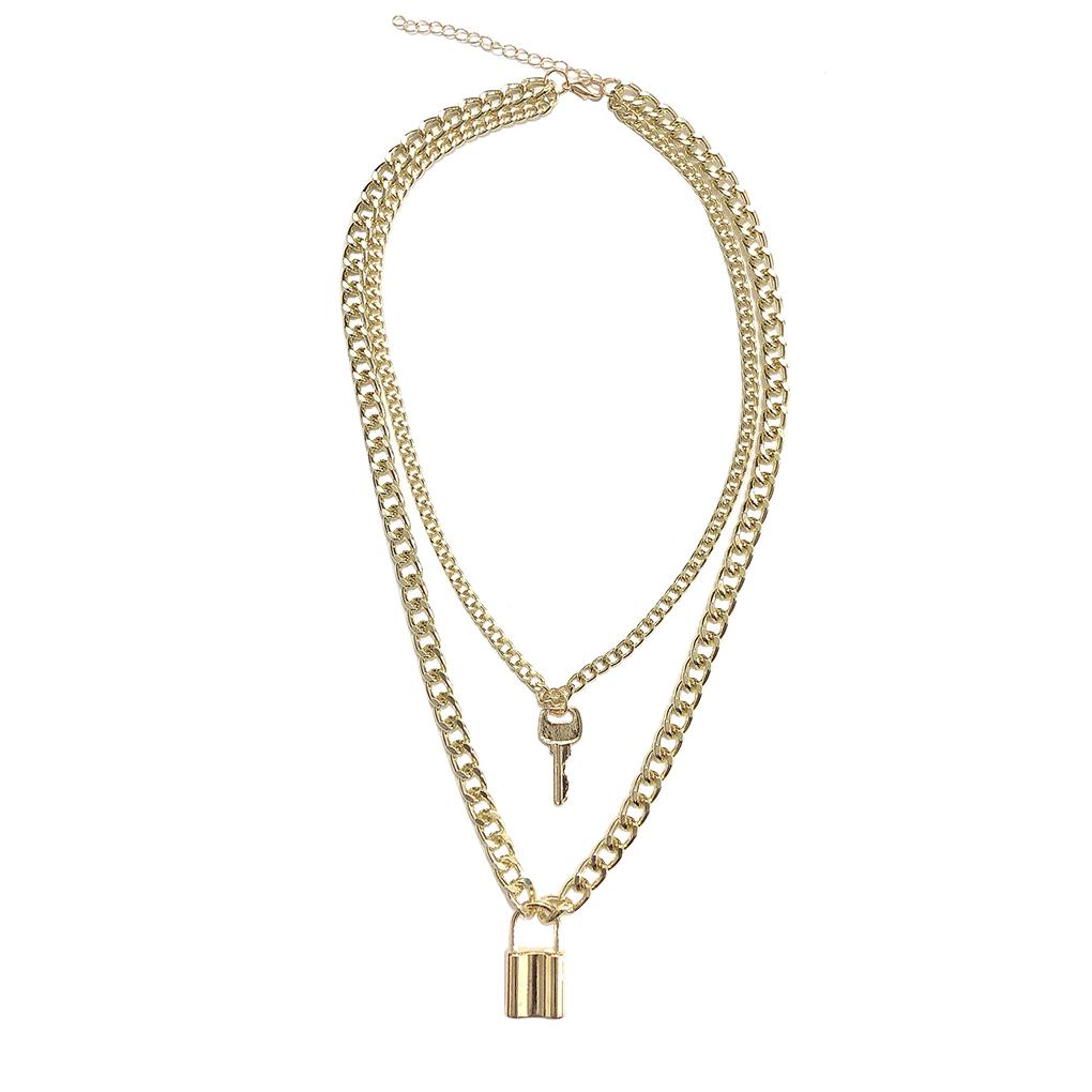 Multi Layer Necklace Vintage Key Lock Pendant Sweater Chain Charm Jewelry Gift for Women Girls