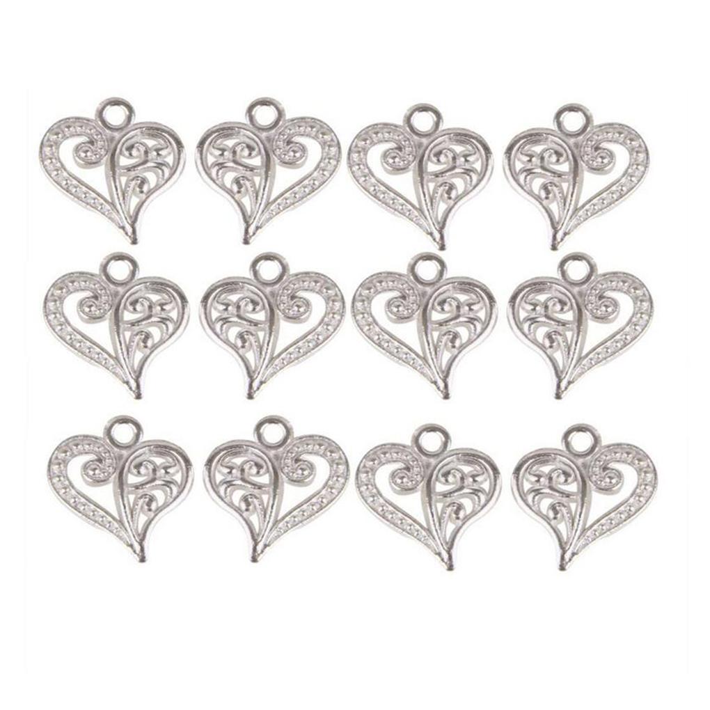 50pcs Hollow Heart Shape Pendant Vintage Alloy Pendant for Jewelry Making DIY Necklace Accessories