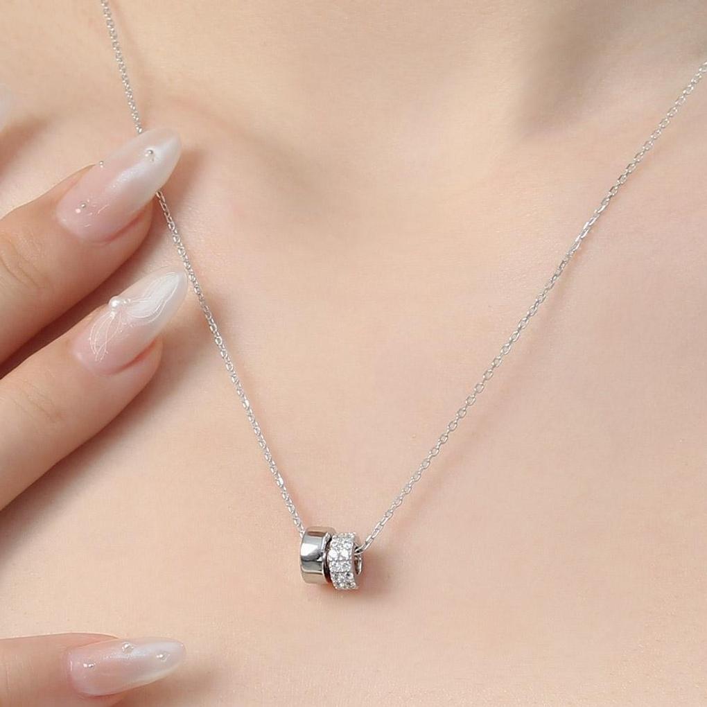 925 Silver Platinum Plated Bold Double Ring Women's Necklace