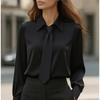 Spot 2025 New Autumn Solid Color Casual Tie Long-sleeved French Shirt Women's Shirt