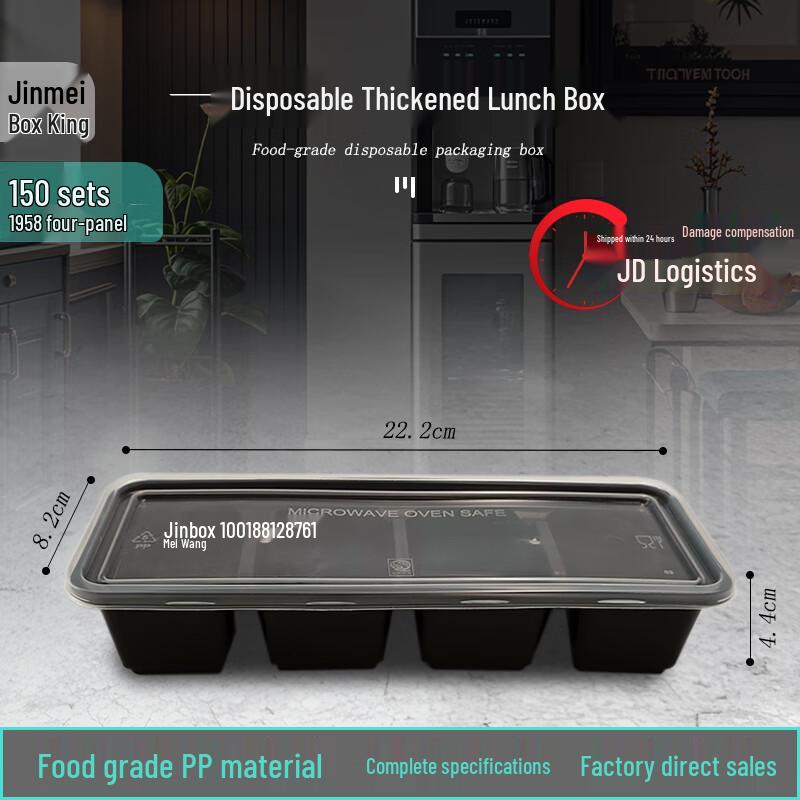 Disposable Black Four-Compartment Lunch Boxes with Lids