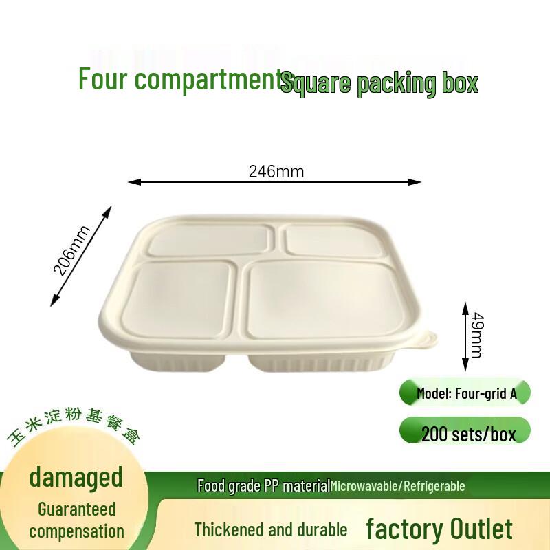 ZL Disposable 4-Compartment Biodegradable Corn Starch Lunch Box