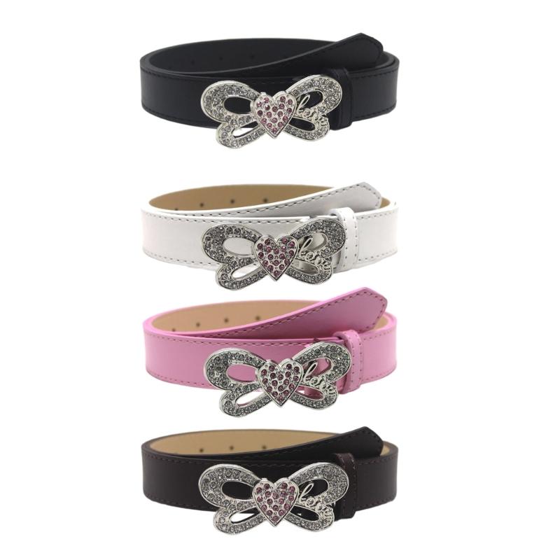 Shinning Rhinestone Waist Belts with Heart&Butterfly Buckle for Rock Fan Adjust Belt for Teens Female Jeans Skirt