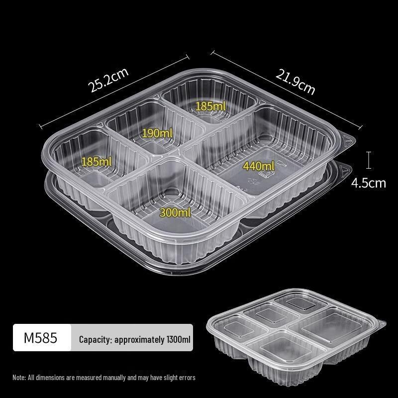 HANDUNYOU 1300ml 5-Compartment Disposable Food Containers with Lids