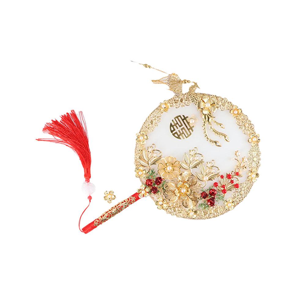 Fan Decorative Fan Bride Group Fan Finished Product Bride Xiuhe Manual Hand Holding Fan Xiuhe Clothes Fan Round Fan Tuan Fan