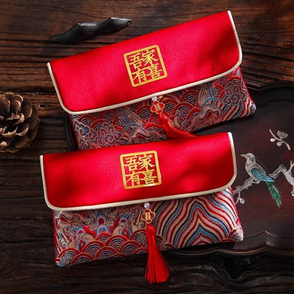 Chinese New Year PU Lucky Red Pockets Button Blessing Words Tassel Red Envelop PU Leather Spring Festival