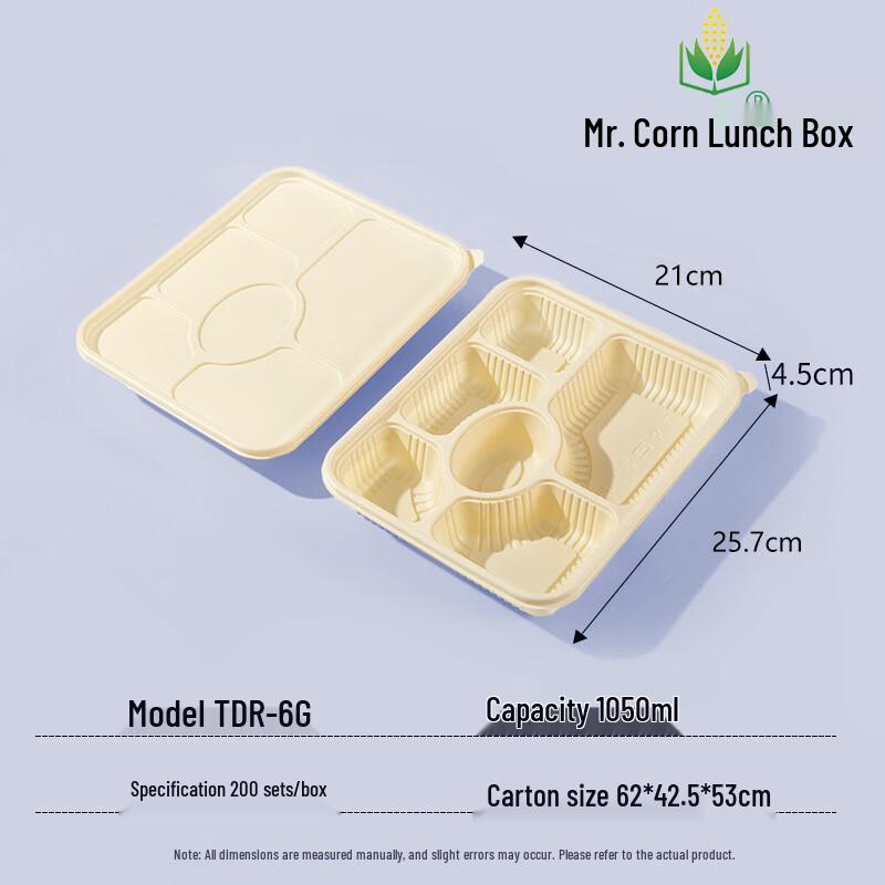 Disposable 5-Compartment Corn Starch Lunch Box