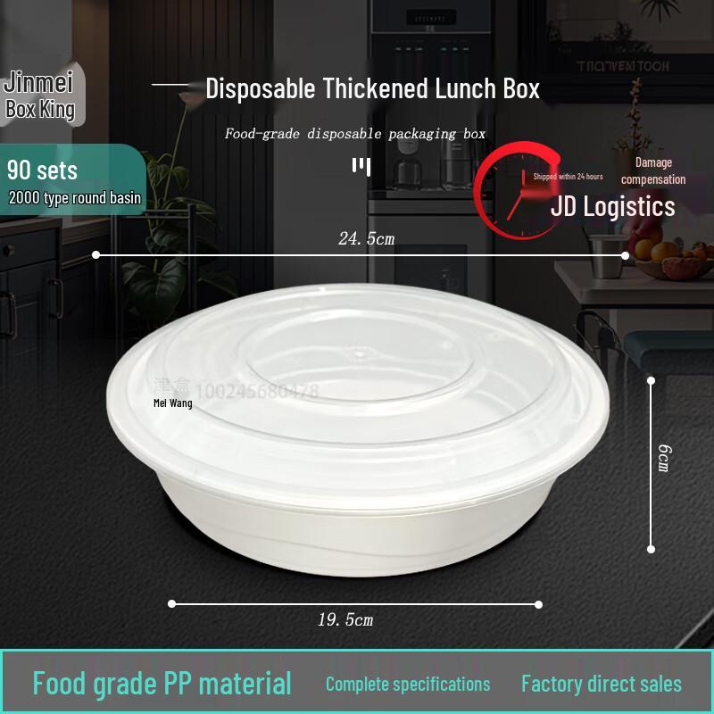 Jianmeihewang 2000ml High-Lid Round Disposable Food Containers