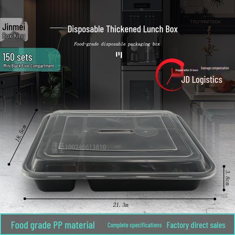 Disposable 5-Compartment Meal Prep Containers with Lids (150 Sets)