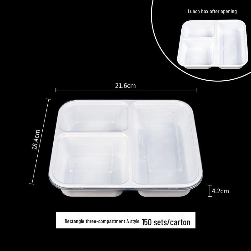 Model1000ml 3-Compartment Rectangular Milky White (Model A) - 150 Sets