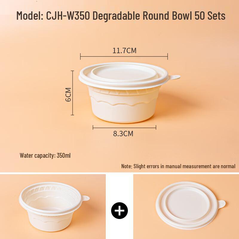 Eco-Friendly Corn Starch Disposable Round Lunch Boxes with Lids, 50 Sets