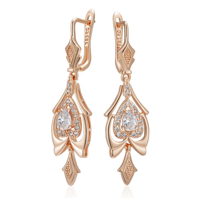 Rose Gold Color Fine Drop Earrings For Women Crystal Flower White Natural Zircon Accessories Daily Vintage Jewelry