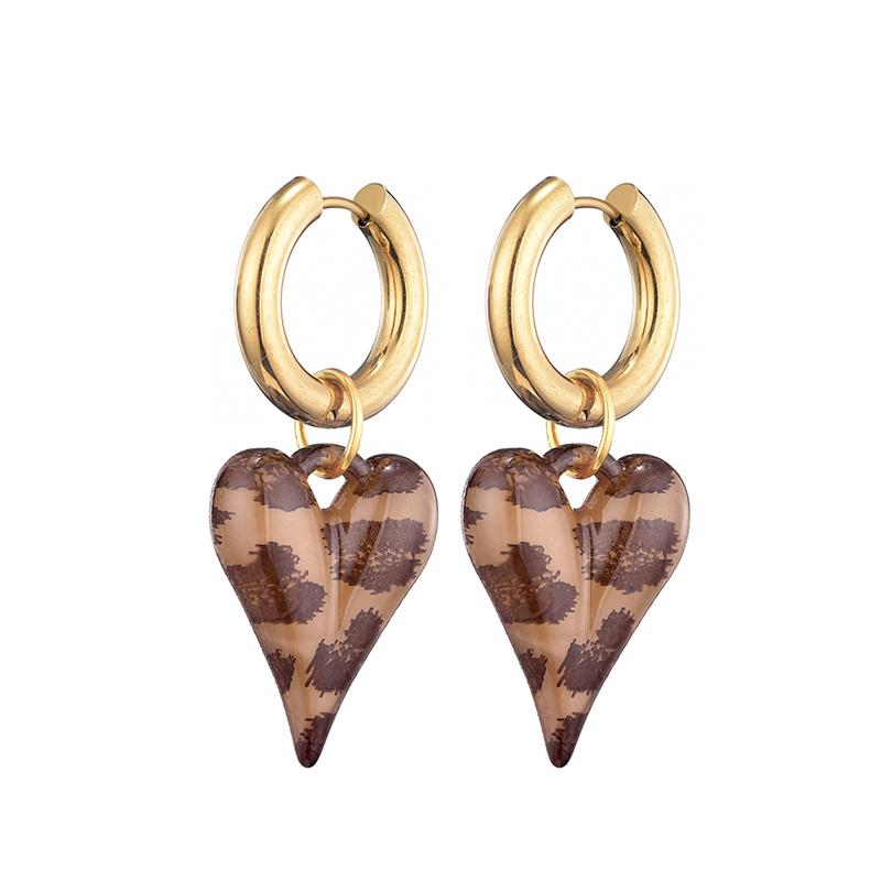 New Fashion Acrylic Resin Leopard Heart Pendant Hoop Earrings Woman Gold Color Thick Stainless Steel Ear Buckle Female Jewelry