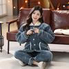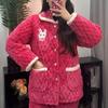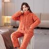Pajamas Women's Winter Three-layer Thickened Padded Jacket Coral Fleece Lapel Super Warm Can Be Worn Outside Loungewear