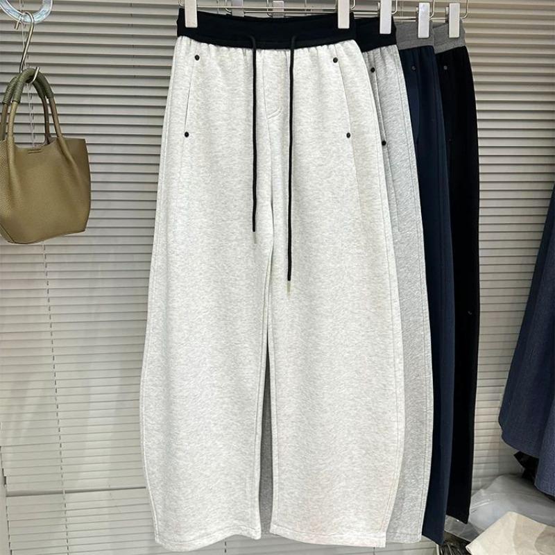 Pants for Women Plus Size Thickened Stretchy Elastic High Waist Long Trousers Solid Colour Fleece Casual Wide Leg Pants