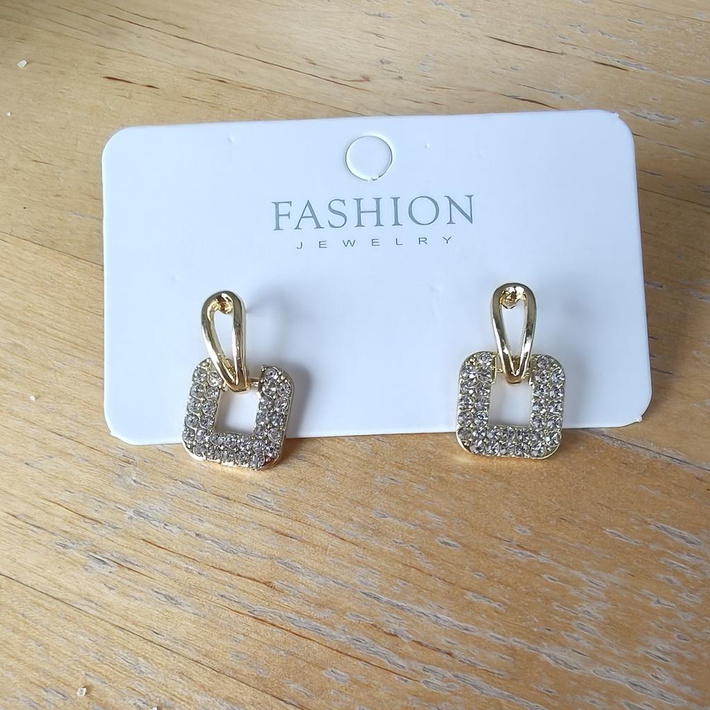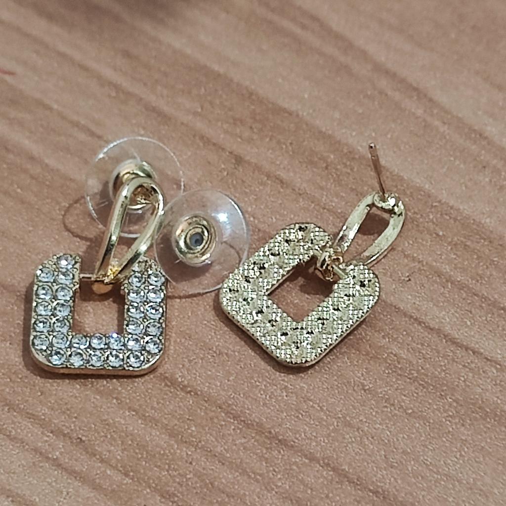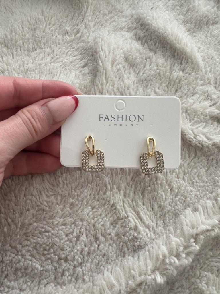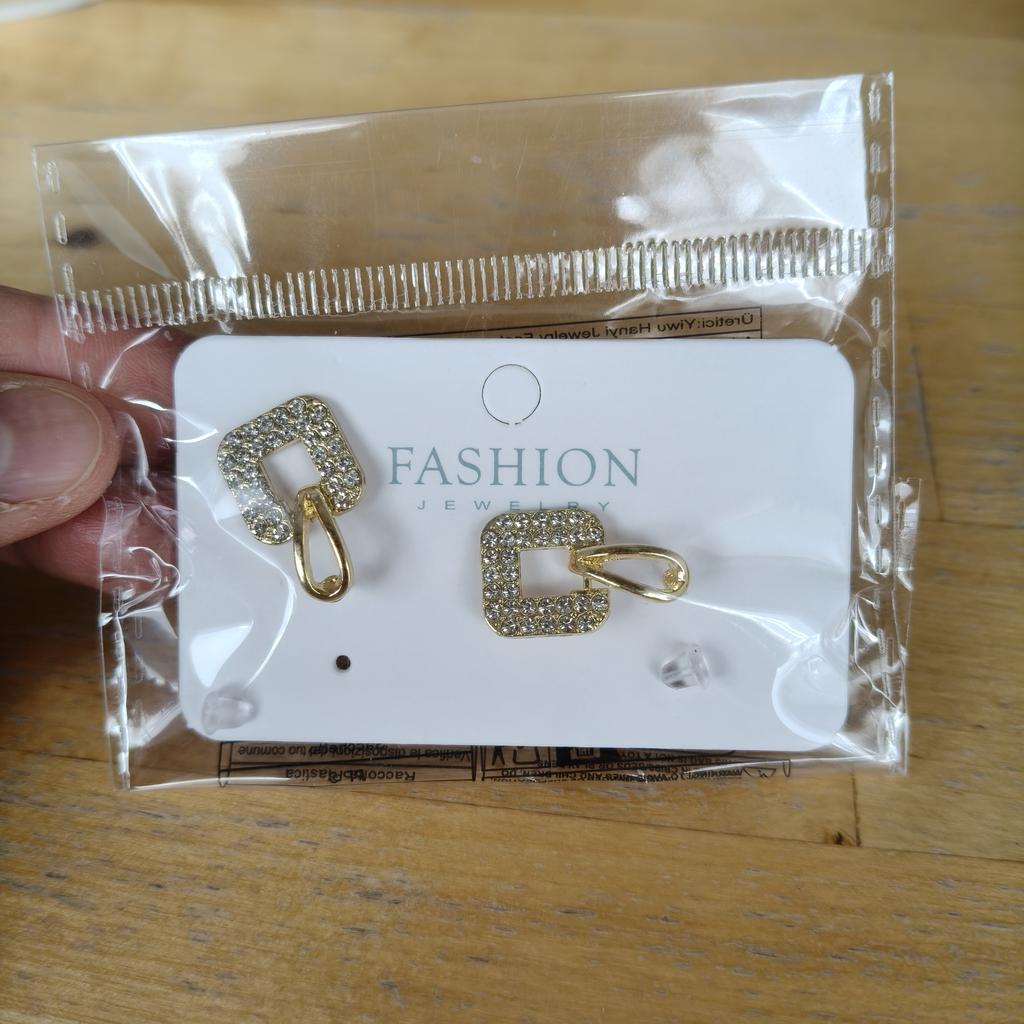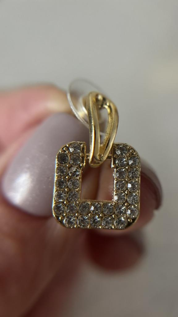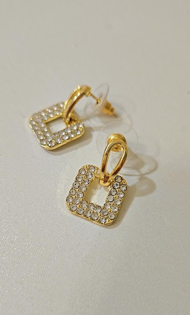 EARRINGS Geometric earrings outlined with crystals. They arrived in Italy with tracked shipping in 22 days. Super fast shipping. Well wrapped in bubble wrap, they arrived intact.. Packaging: They come in a plastic bag with a cardboard support. Excellent quality-price ratio. The color of the metal is gold in a zinc alloy. Back closure: double both in plastic and silicone well-secured No glue stains and no defects. The crystals are well set and firm The purchase is recommended👌👌👌👌👌