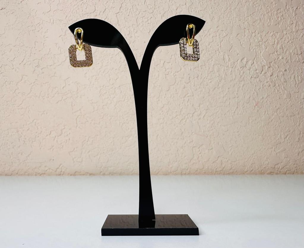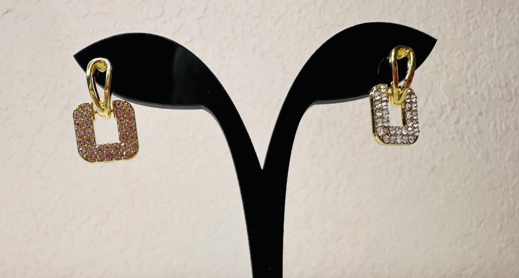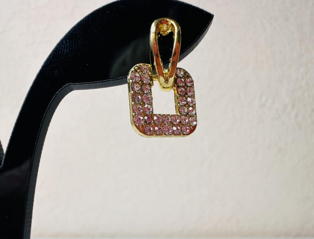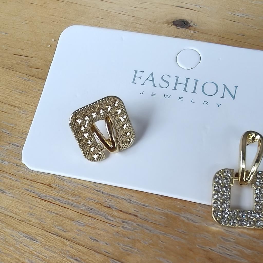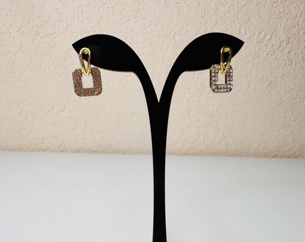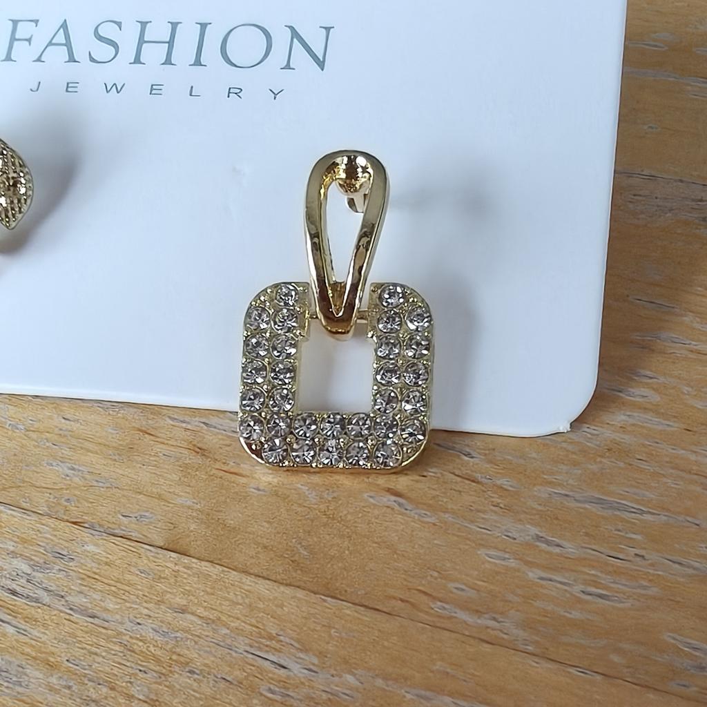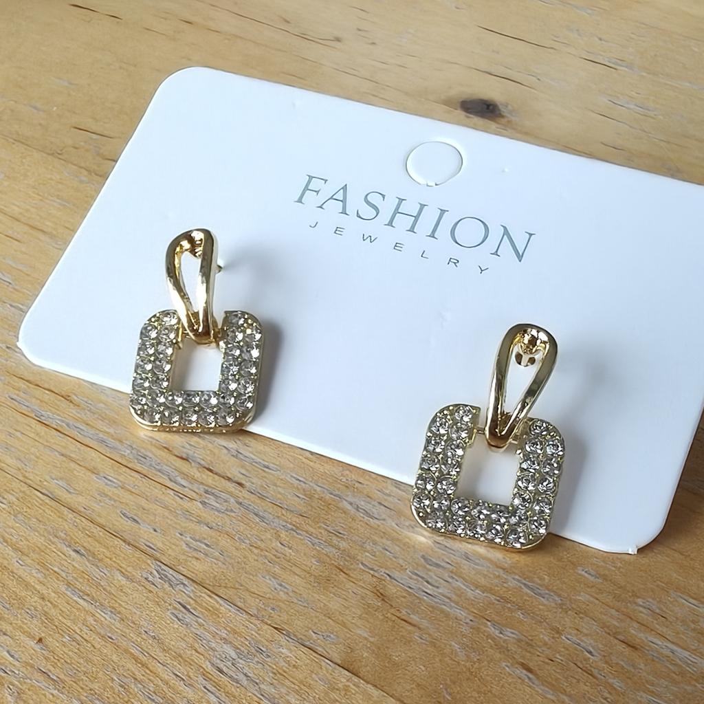EARRINGS Geometric earrings outlined with crystals. They arrived in Italy with tracked shipping in 22 days. Super fast shipping. Well wrapped in bubble wrap, they arrived intact.. Packaging: They come in a plastic bag with a cardboard support. Excellent quality-price ratio. The color of the metal is gold in a zinc alloy. Back closure: double both in plastic and silicone well-secured No glue stains and no defects. The crystals are well set and firm The purchase is recommended👌👌👌👌👌