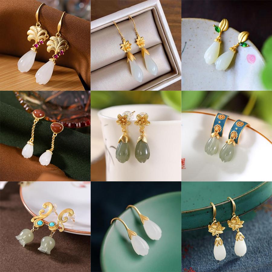 Designer Original New Natural Hetian Jade Magnolia Plant Exquisite Earrings Chinese Style Elegant Ladies Jewelry
