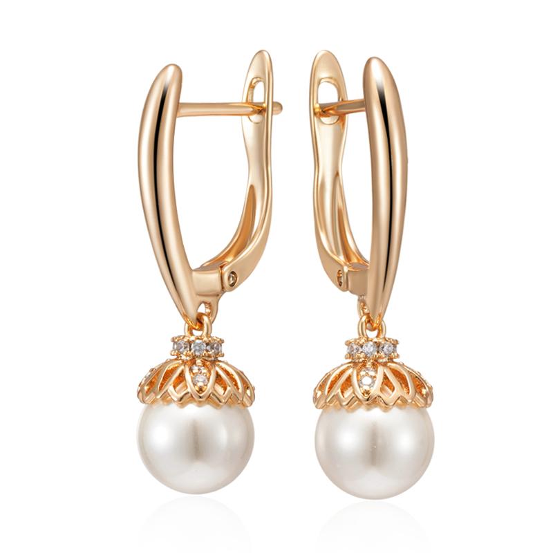 Rose Gold Color Pearl Long Drop Earrings For Women Unique Natural Zircon Accessories Metal Flower Wedding Jewelry