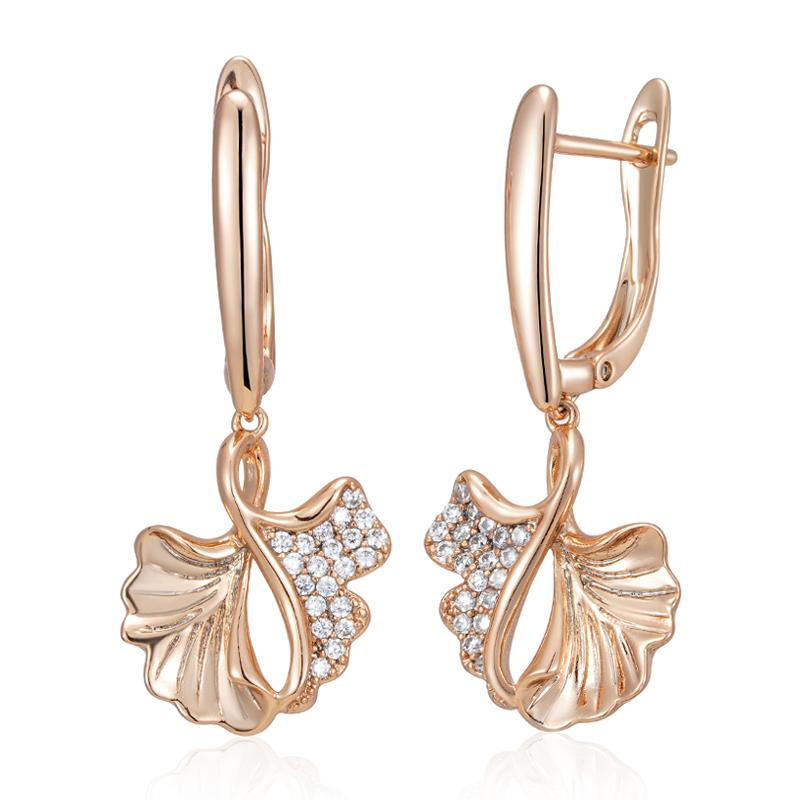 Rose Gold Color Creative Crystal Flower Drop Earrings For Women Fashion Natural Zircon Accessories Vintage Jewelry
