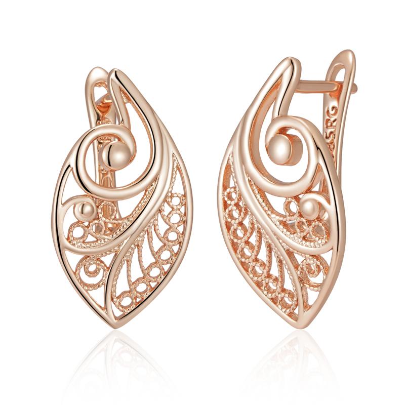 Fashion Glossy Rose Gold Color Ethnic Bridal Earrings Unusual Hollow Flower Drop Earrings For Women Daily Jewelry