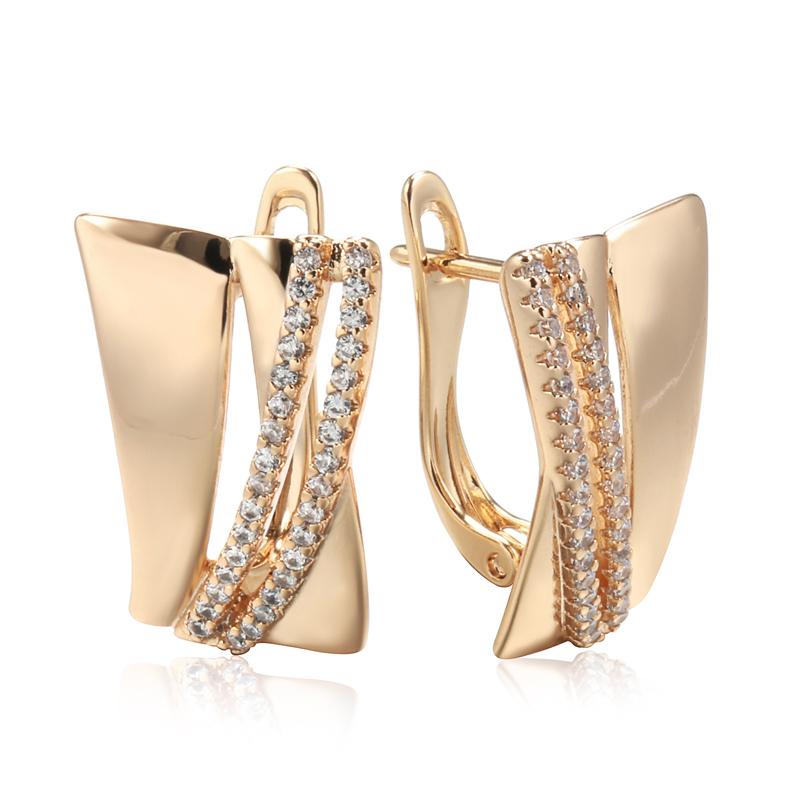 Glossy Big Dangle Earrings For Women Rose Gold Color With Natural Zircon Retro Ethnic Wedding Fine Daily Jewelry