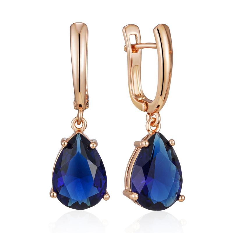 New Water Drop Dark Blue Long Dangle Earrings For Women Rose Gold Color Natural Zircon Wedding Earrings Daily Jewelry