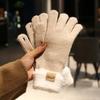 New Women's Thickened Thermal Gloves Winter Simple Plush Splicing Versatile Dew Finger Knitted Gloves