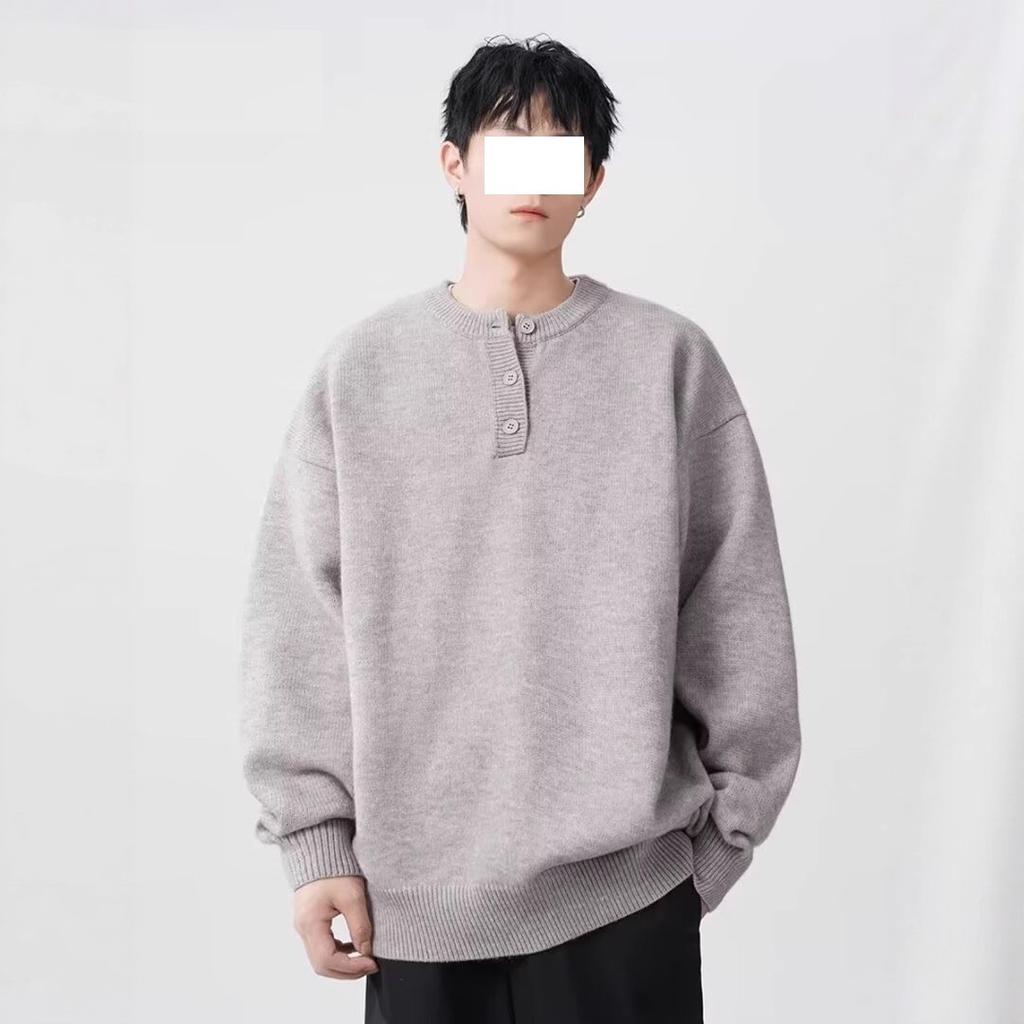 American Ruffian Handsome Crew Neck Sweater Men's Henry Collar Top New Autumn and Winter Lazy Knitted Sweater Pullover Jacket