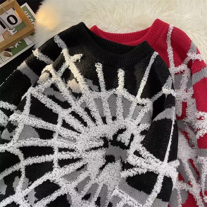 Sweater Men's and Women's Autumn and Winter New Handsome Spider Jacquard Round Neck Lazy Loose Trendy Knitted Sweater