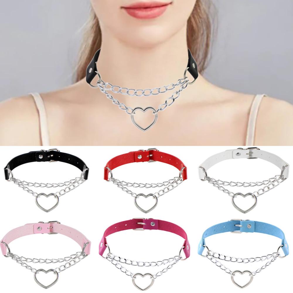 Eco-friendly Harajuku Peach Heart PU Leather Choker Necklace - Trendy Heart-Shaped Clavicle Chain